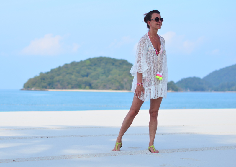 Tu es très jolie , toute bronzée et cette tunique en dentelle te va super bien ! avec quelques touches colorées qui s’accordent parfaitement au contexte !